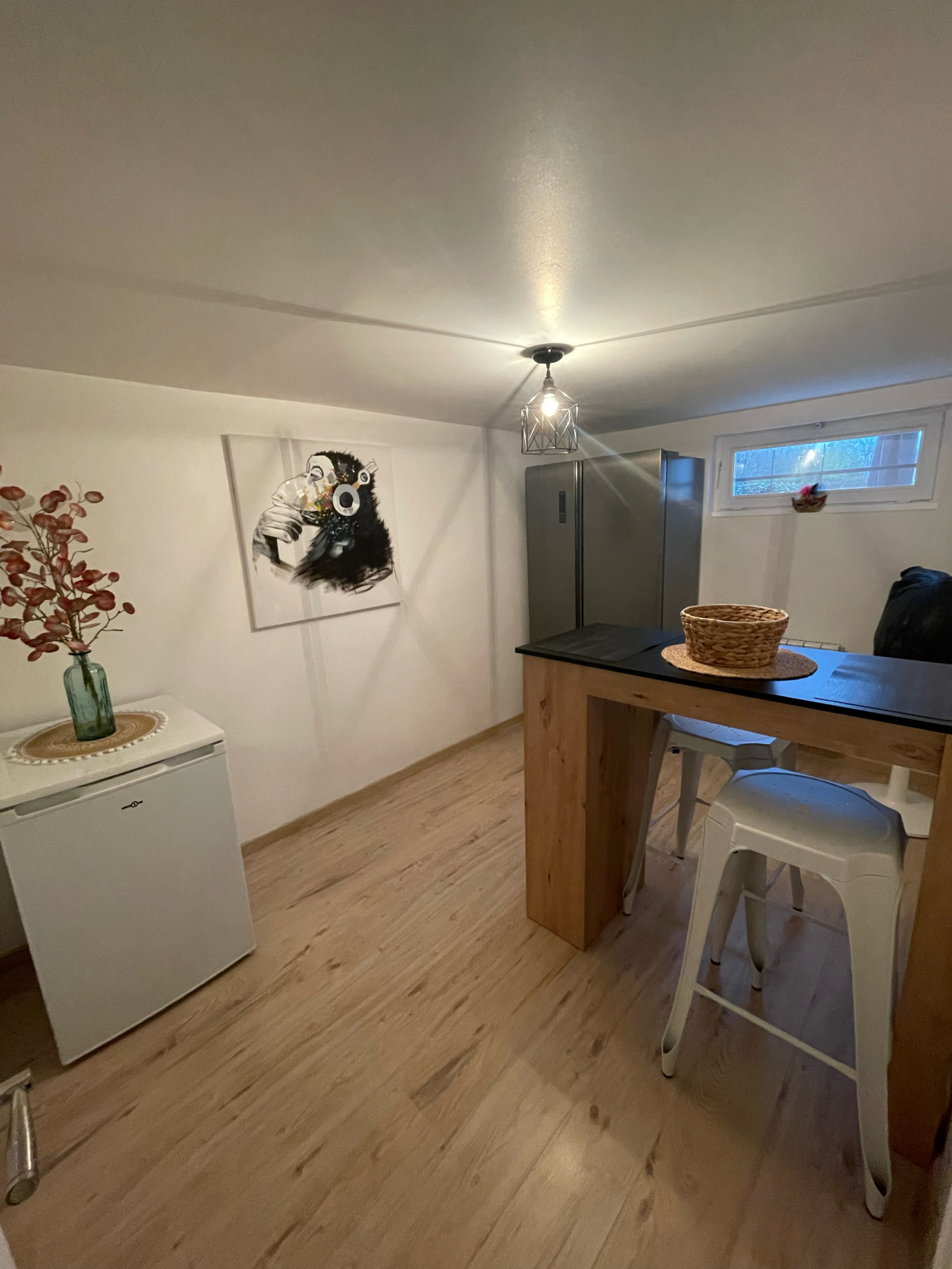 A savoir qu'initialement, il y avait une chambre supplémentaire. La cloison a été déposée pour agrandir le séjour.