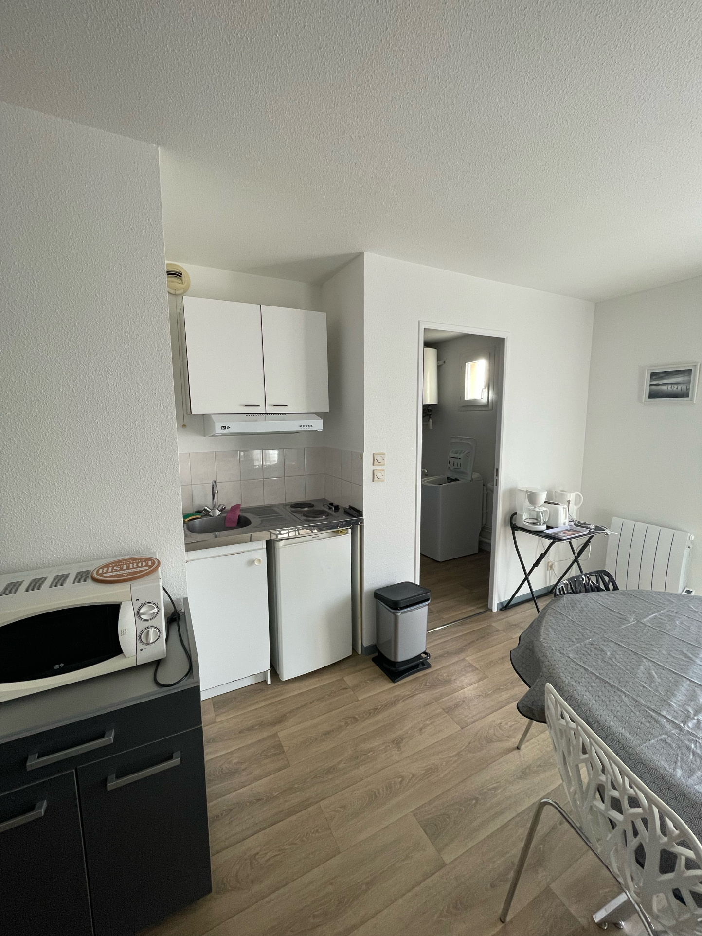 L'appartement de 24m2 se compose d'une pièce de vie de 20m2 avec une cuisine, un coin salle à manger et un salon (canapé lit), à la suite nous trouvons une salle d'eau avec wc et machine à laver, placard.