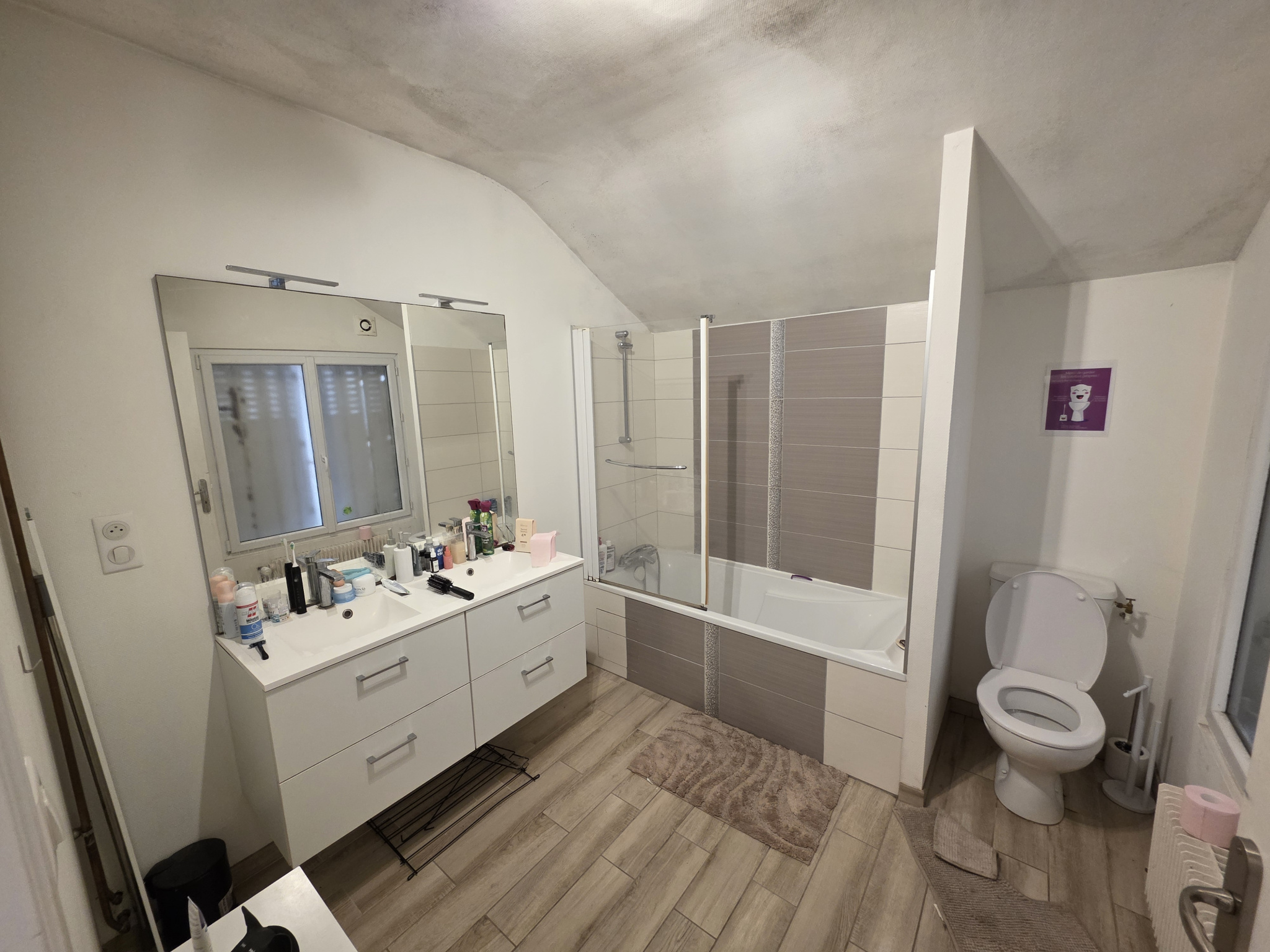 A létage : palier, salle d'eau avec wc et 3 chambres. Cela avec de multiples rangements.