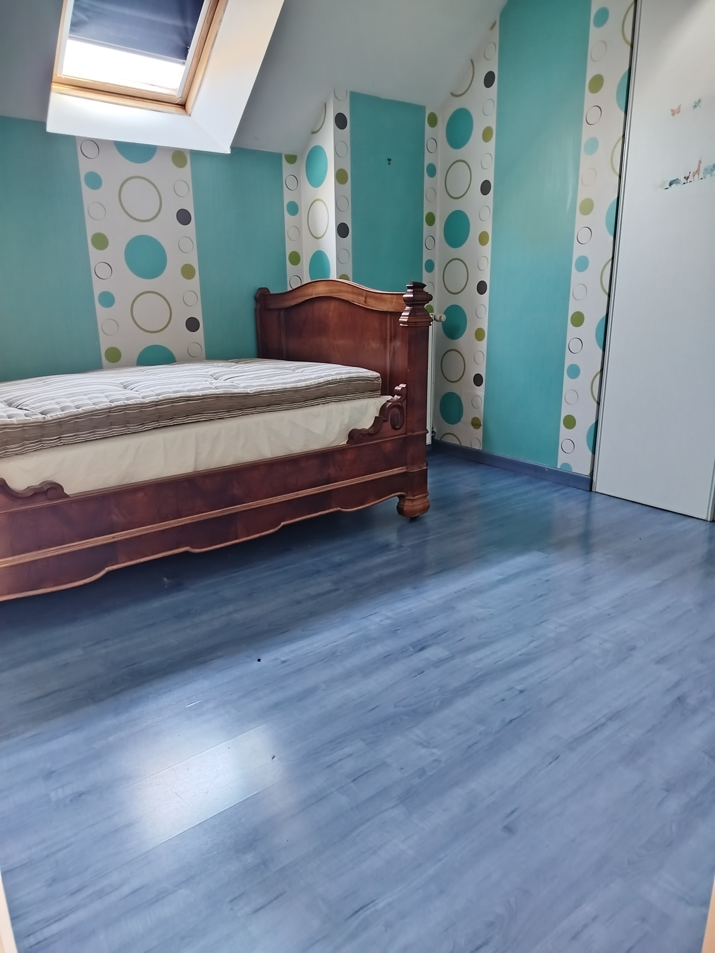 À l’étage : 2 chambres, salle d’eau avec WC et grenier