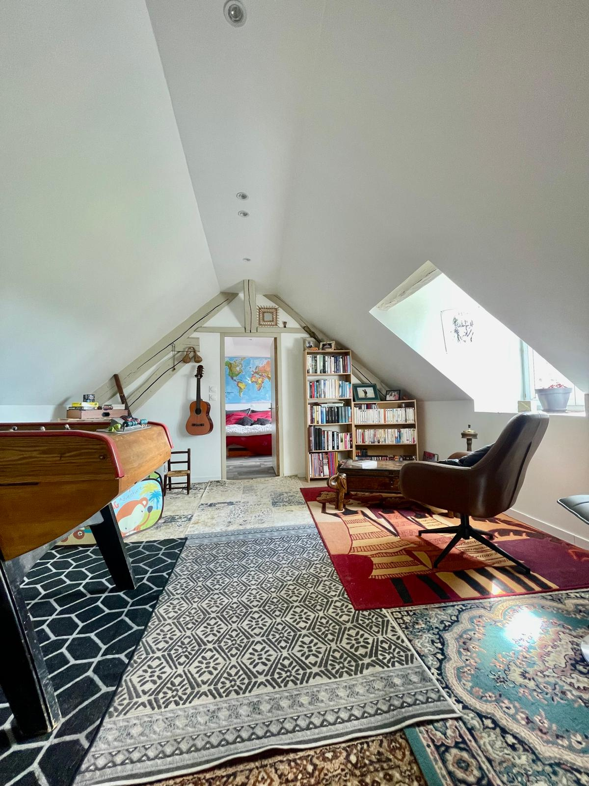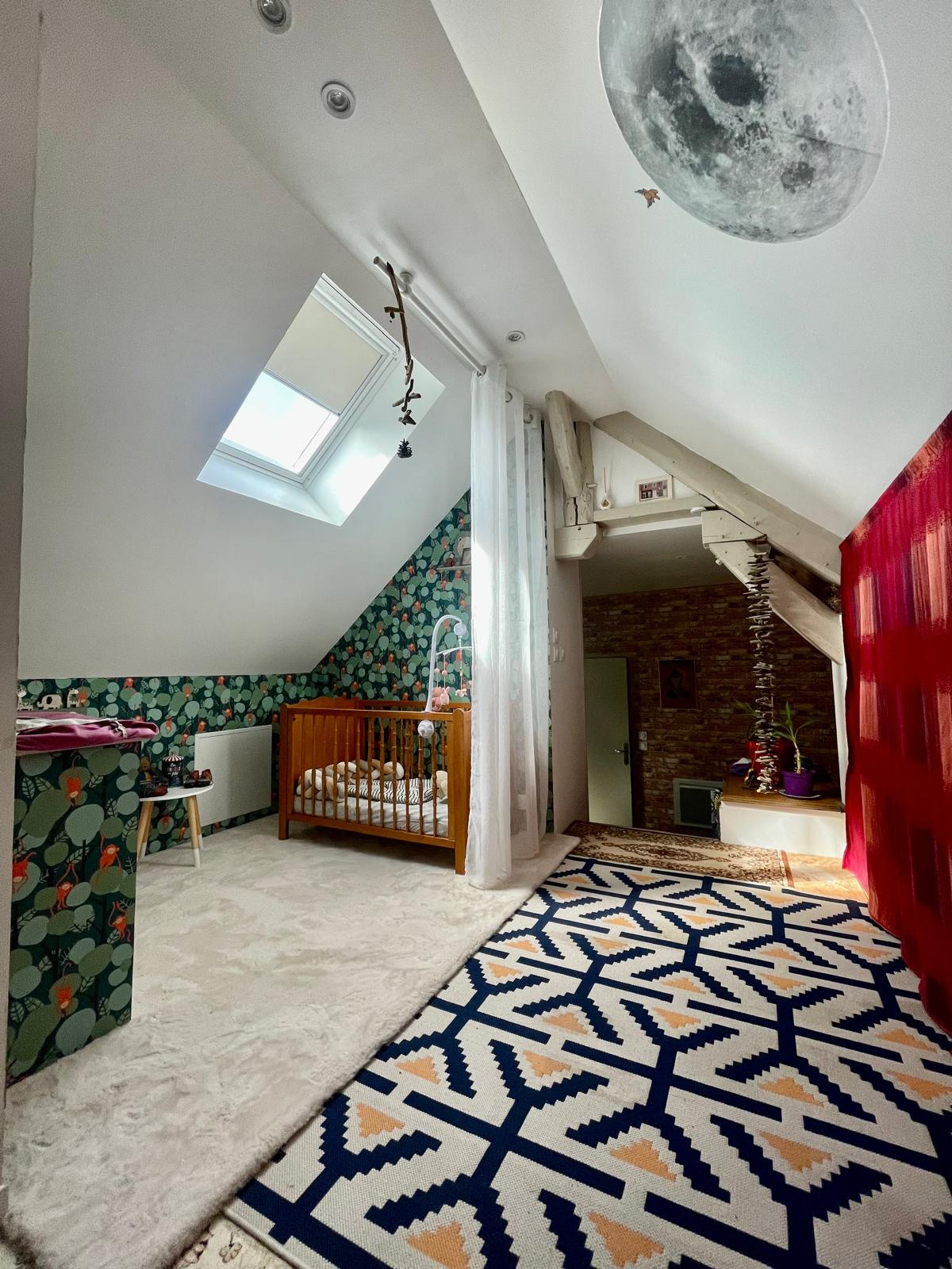 À l’étage, vous trouverez 2 chambres, un bel espace bureau pouvant facilement être transformé en 3ème chambre, un WC ainsi qu’une salle d’eau.