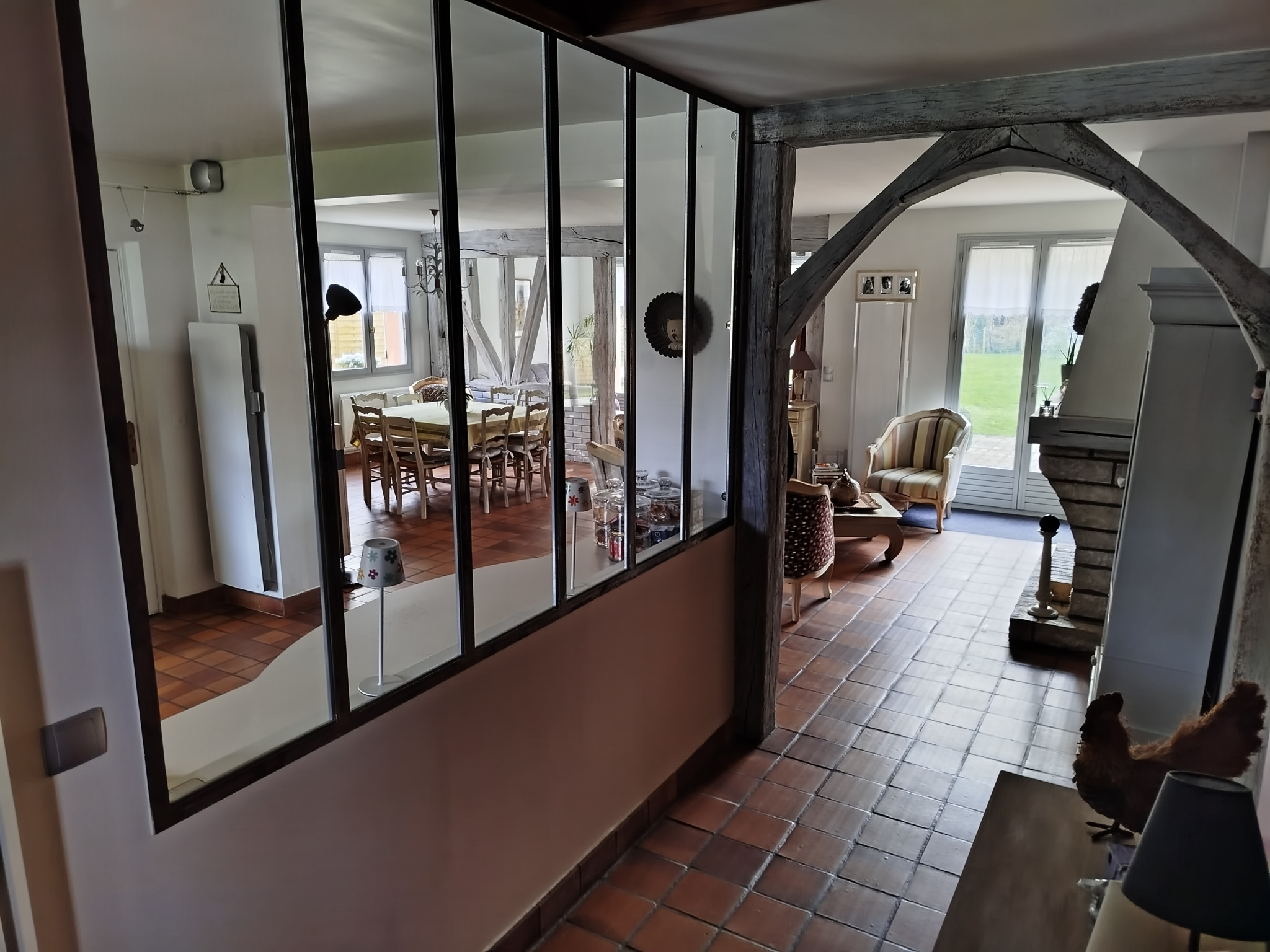 Accessible de plain-pied, la maison se compose au rez-de-chaussée :