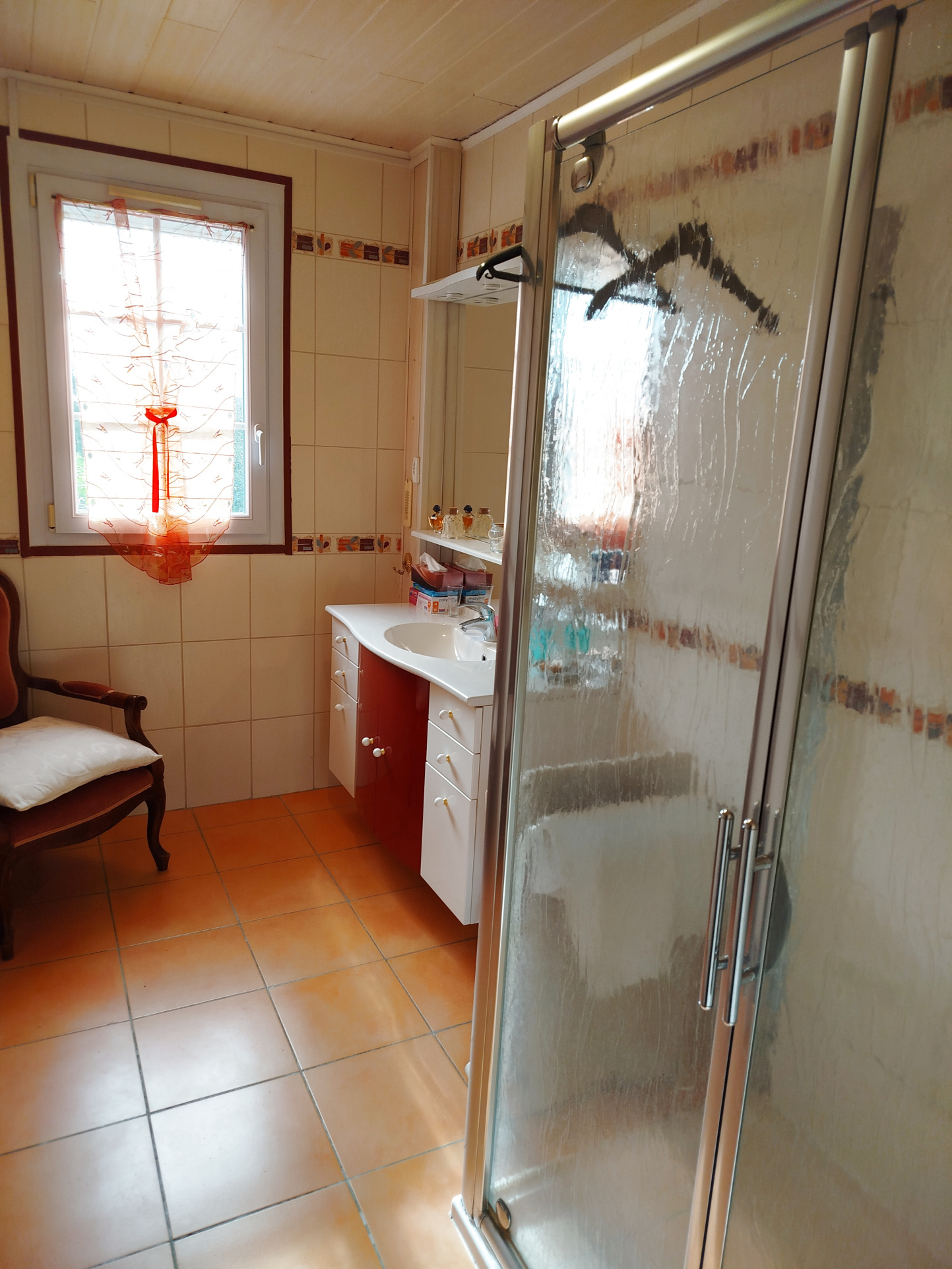 A l'étage, une pièce palière d'environ 20m2 s'ouvre sur 2 chambres spacieuses et lumineuses ainsi qu'une salle d'eau avec Wc.