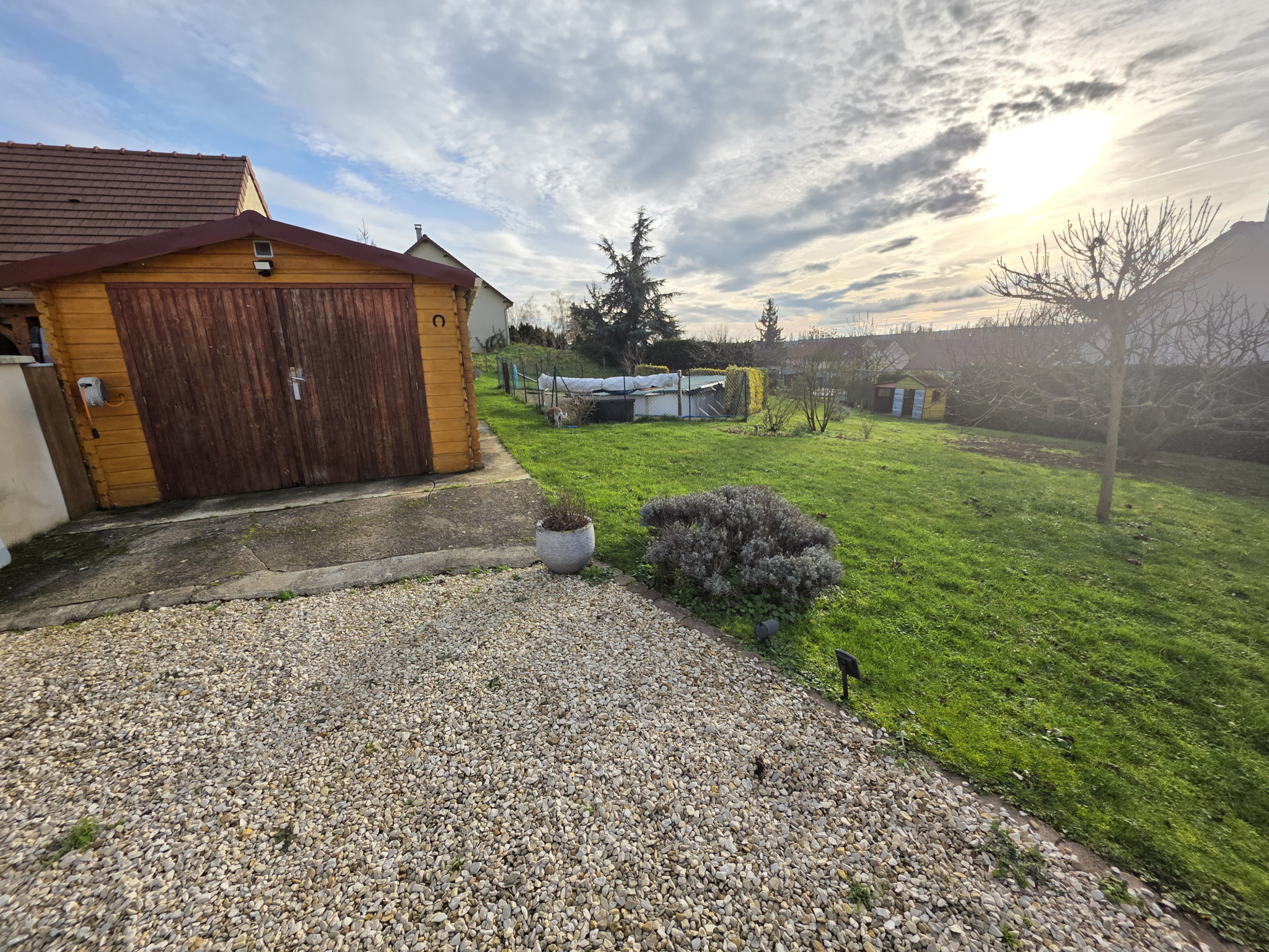 Sur le beau terrain de 1207 m2 clos et arboré, vous trouverez dépences et piscine semi-enterrée.