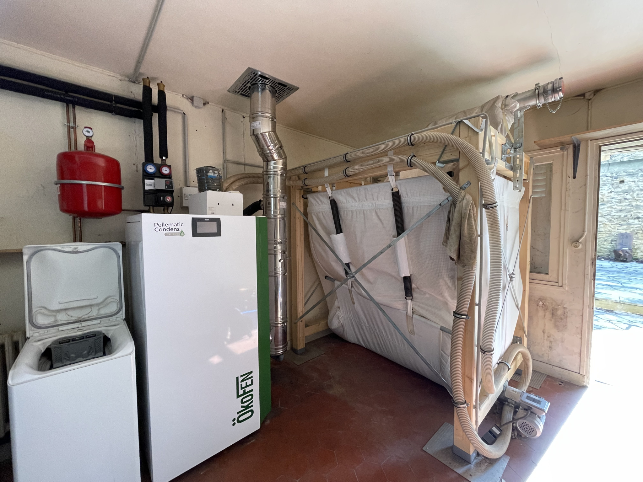 Ensemble immobilier sur un terrain de 6 426m2 à moins de 10 MIN comprenant: une première maison principale d'environ 153m2 habitable composée de: hall d'entrée, séjour double traversant de 50m2, une cuisine individuelle, une salle d'eau, wc. Au 1er étage: palier/dégagement, salle de bains avec wc, trois chambres. en sous-sol une cave et à la suite au rez-de-chaussée une chaufferie, chauffage central récent (chaudière à granulés). Deuxième habitation d'environ 110m2 habitable comprenant au rez-de-chaussée séjour avec coin cuisine de 43m2 environ, un cellier, un wc. Au premier étage: un palier, deux chambres, salle de bains. En retour de la deuxième habitation se trouve une grange s'une surface de 96m2 au sol avec une mezzanine de 50m2 environ. Charme de l'ancien, tomettes, poutres, pierre, puits,... Bien rare à visiter rapidement !