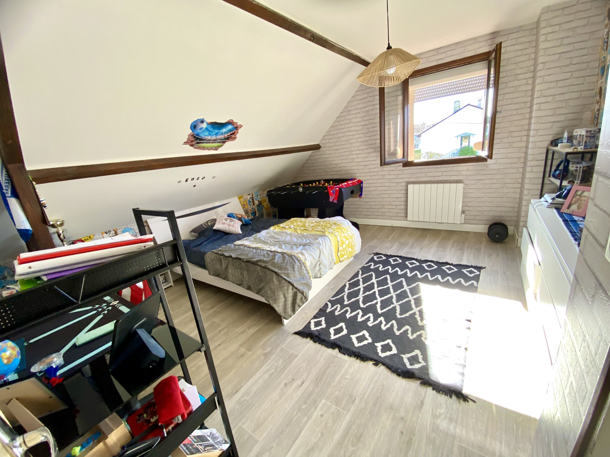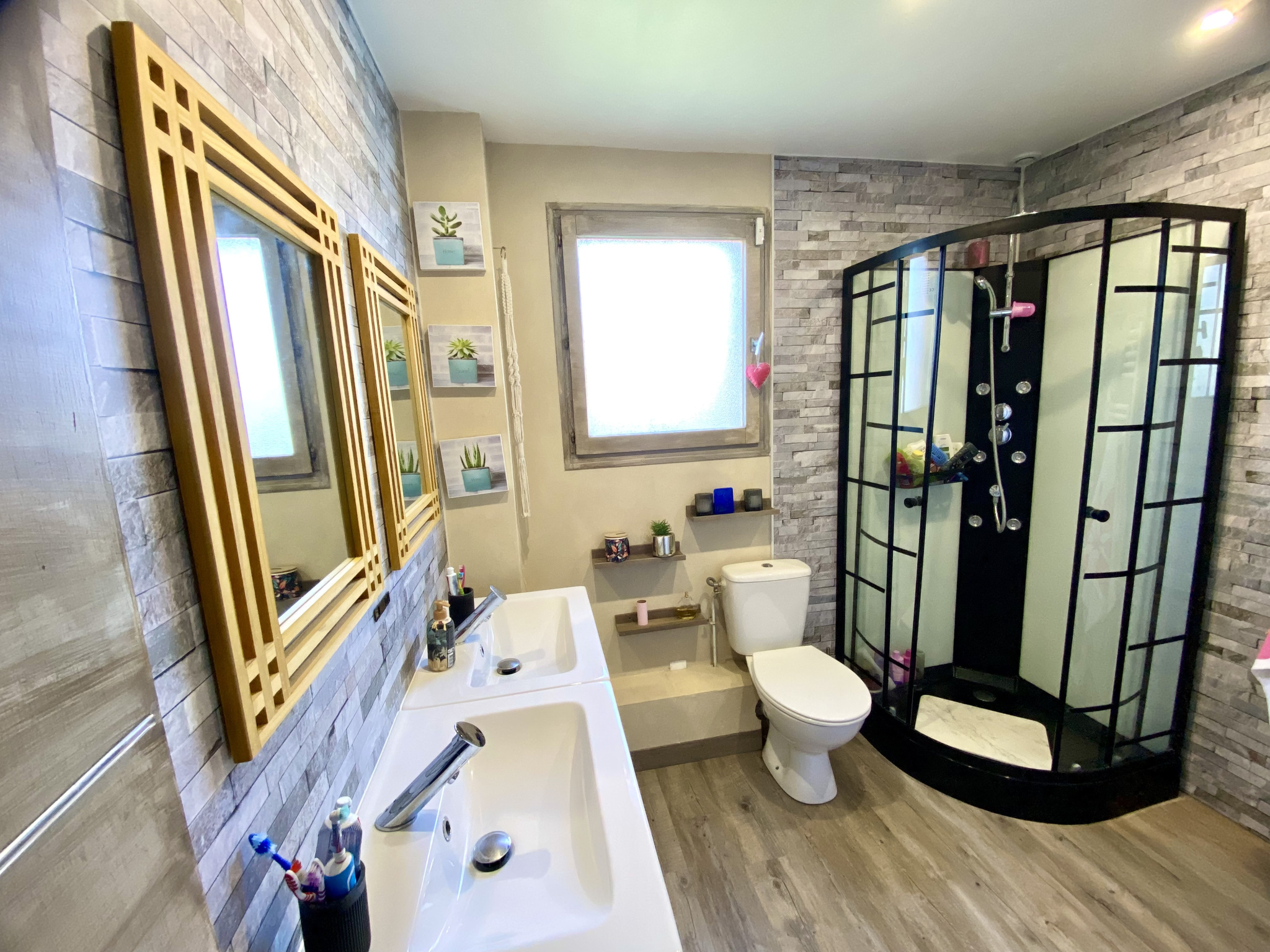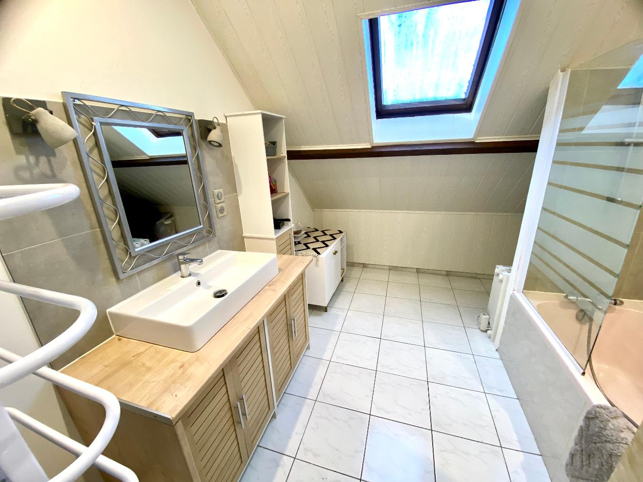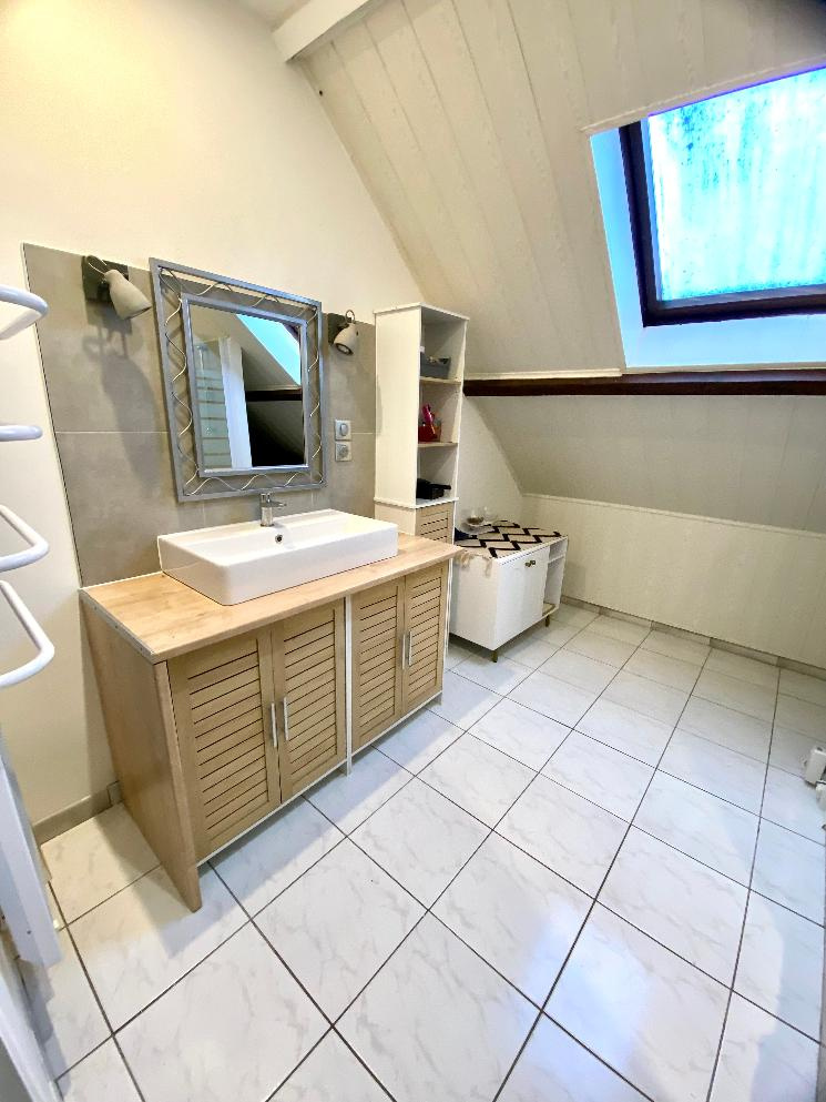 A l'étage, un palier en mezzanine desservant quatre chambres, un bureau, une salle de bain et un wc indépendant, idéal pour une grande famille.
