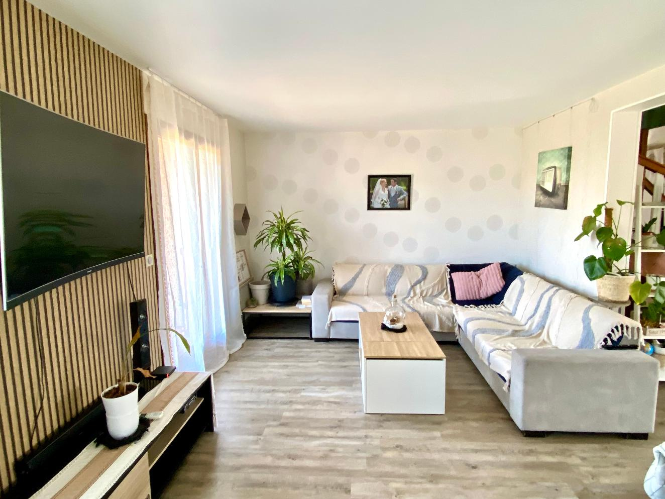 Au rez-de-chaussée, vous découvrirez une entrée ouvrant sur un spacieux salon-séjour lumineux avec cuisine ouverte. Ce niveau comprend également une chambre, ainsi qu'une salle d'eau avec wc, permettant une vie de plain-pied.