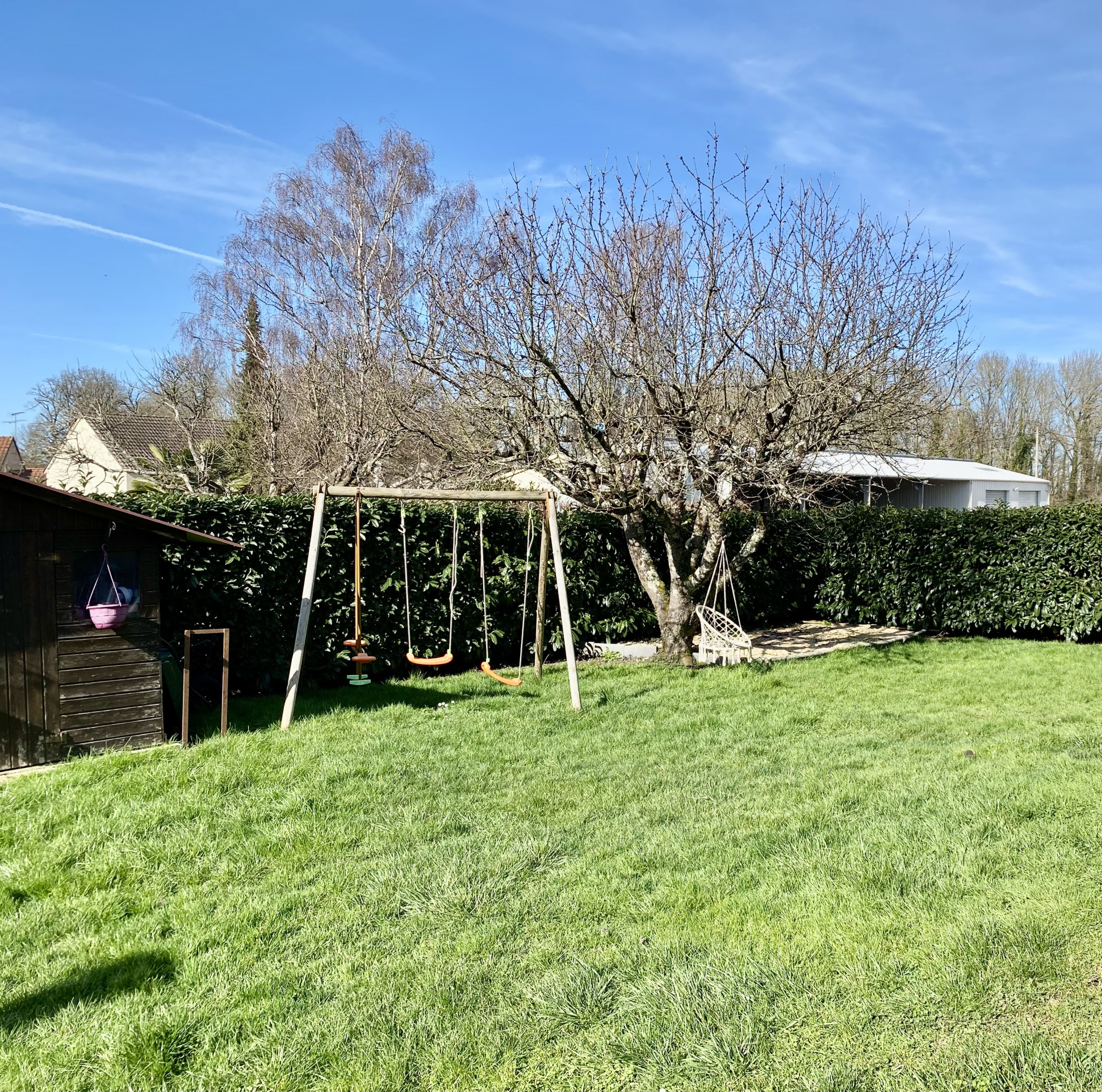 A l'extérieur, vous profiterez d'un jardin clos d'envion 700m2, garage, parfait pour les moments de détente dans un environnement paisible.