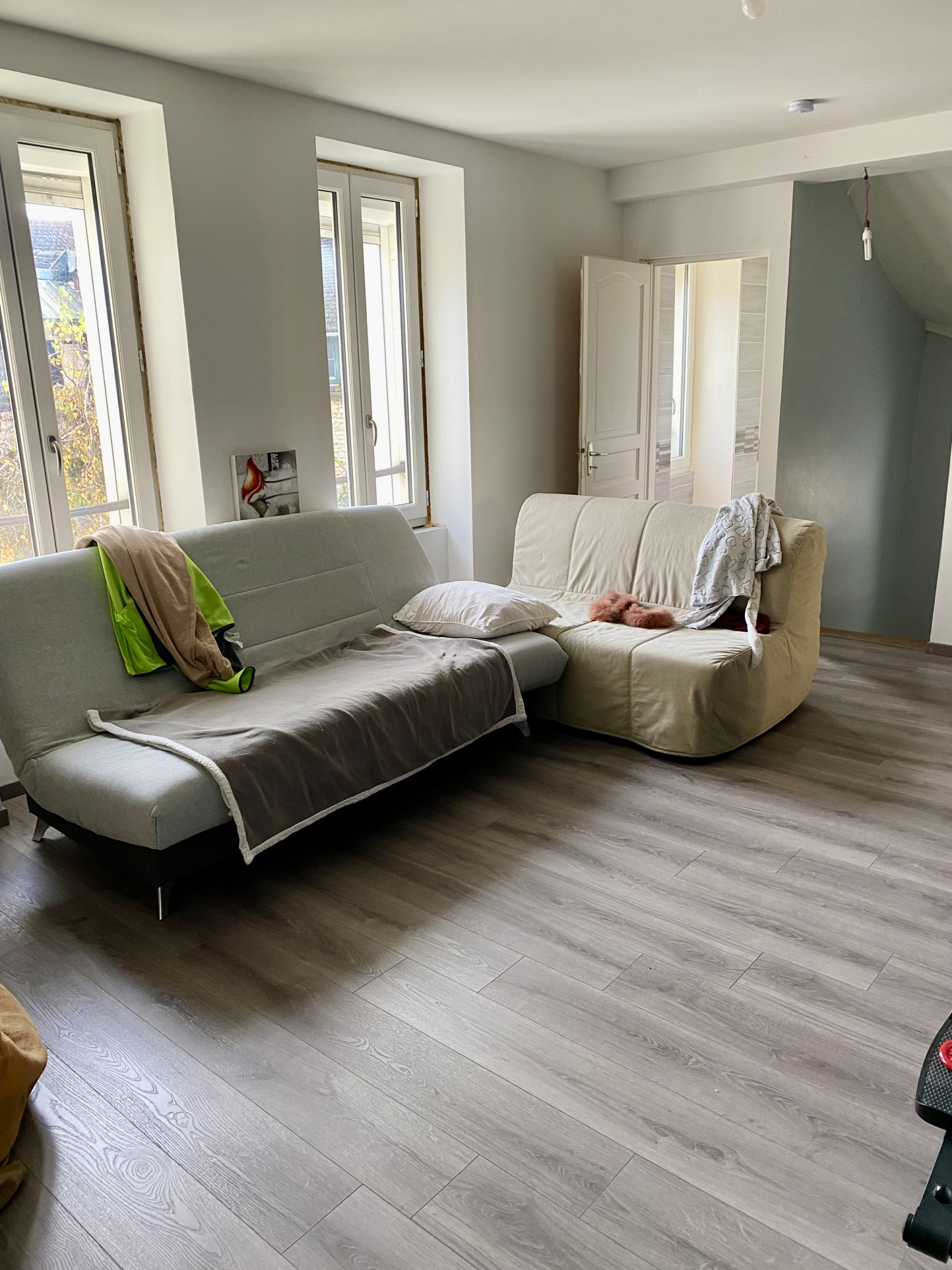 Seconde partie, un appartement comprenant : entrée, cuisine, salle d'eau, salon/séjour, chambre, wc.